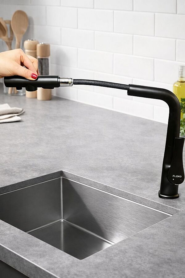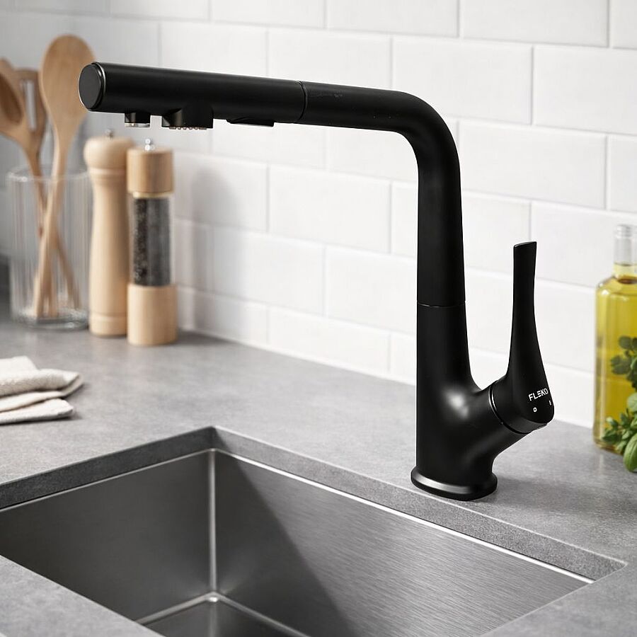 Modern mutfakların vazgeçilmezi olan Fleko Miranda Spiralli Arıtmalı Mutfak Bataryası, şıklığı ve fonksiyonelliği bir arada sunar. Siyah mat tasarımı ile mutfağınıza estetik bir dokunuş katarken, arıtmalı su çıkışı sayesinde sağlıklı suya tek dokunuşla ulaşmanızı sağlar.