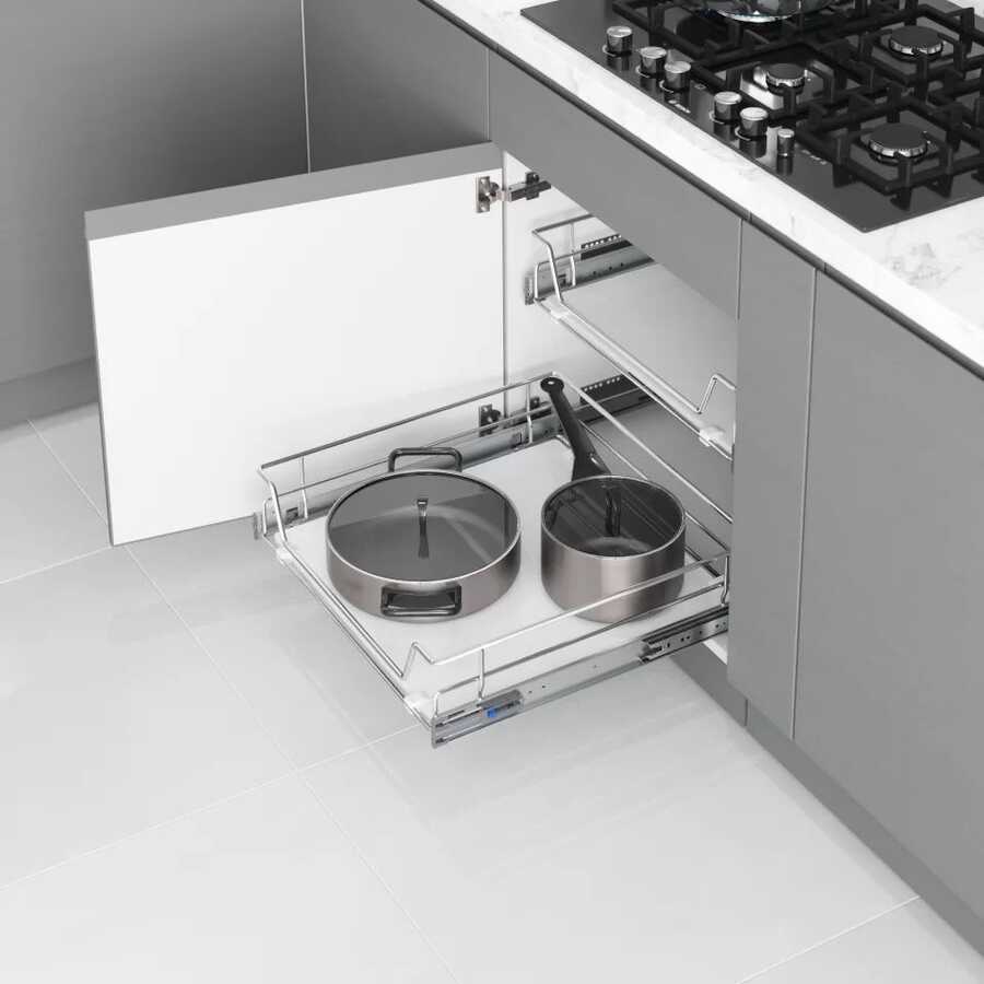 - Yavaş ve sessiz kapanma sağlayan Soft Closing teleskopik bilyeli ray kullanılmıştır.
