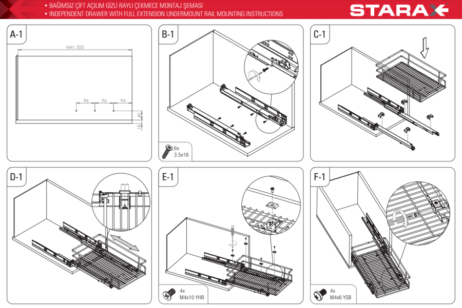 Bağımsız Çift Açılım Gizli Raylı Çekmece
