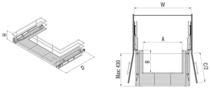 • 2 farklı modül genişliğine uygun sepetler krom kaplamalıdır.