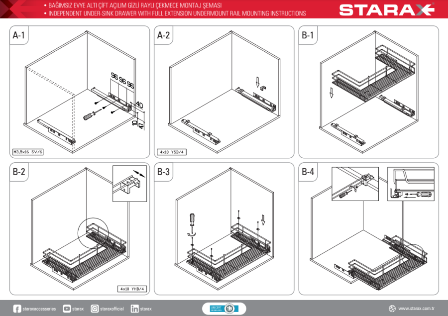 Gelince Haber Ver2352- Bağımsız Tandem Raylı Evye Altı Çekmece 90cm.