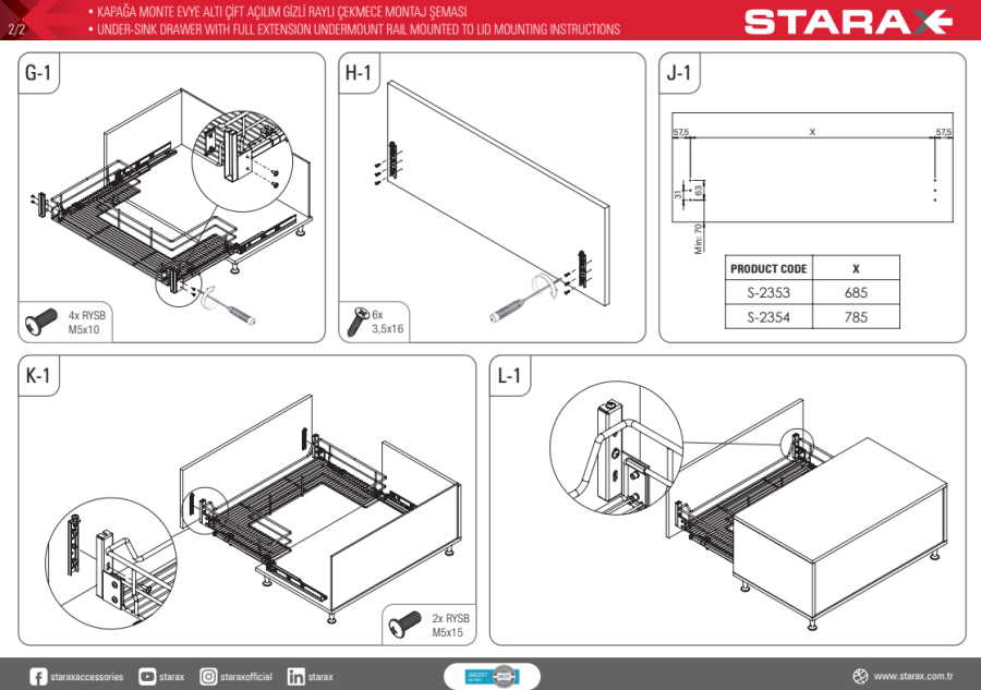 Gelince Haber Ver2354 - KAPAĞA MONTE EVYE ALTI ÇEKMECE 90 CM