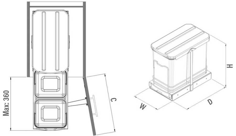 Teleskopik Raylı Plastik Gövde Çöp Kovası 12+12 lt