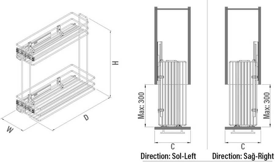 | Ürün Kodu | Yön | W x D x H (mm) |