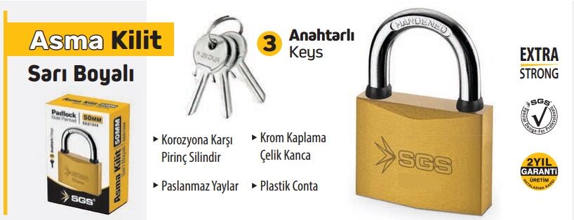 SGS-1343 Asma Kilit Sarı Boyalı 38mm