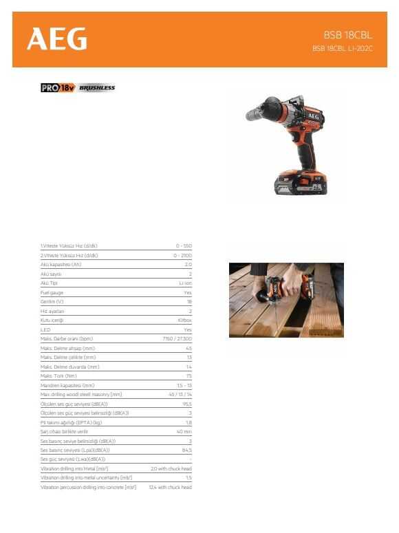 AEG BSB18 C2 BLI-202 18V KÖMÜRSÜZ AKÜLÜ DARBELİ MATKAP TEKNİK ÖZELLİKLERİ Akü Adedi: 2 x 2,0 AhŞarj Süresi: 40 Akülü Ağırlık: 1.8kg Delme: 40/13/14 Madren: 13 mm Maks. Tork: 60 Nm Yüksüz Hızı: 500/1950/dev/dk Darbe Sayısı: 22.500 dar/dk Voltaj: 18 V Stok Kodu: 4935464096 ÖZELLİKLER