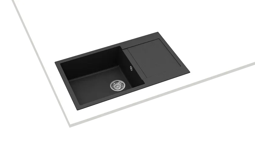 1 Hazneli 1 Damlalıklı Siyah Tequartz Evye