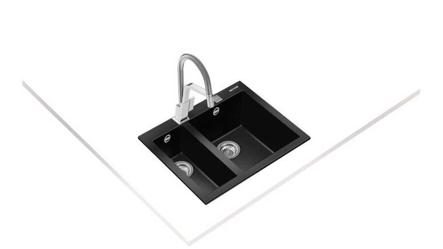 FORSQUARE 590 TG 1,5 Göz Tezgah Üstü Teka Granit Evye Black Siyah