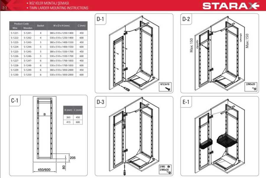 - 450-600 mm modülde sağ ve sol yöne tekli, 900-1200 mm modülde ikili olarak kullanılır.