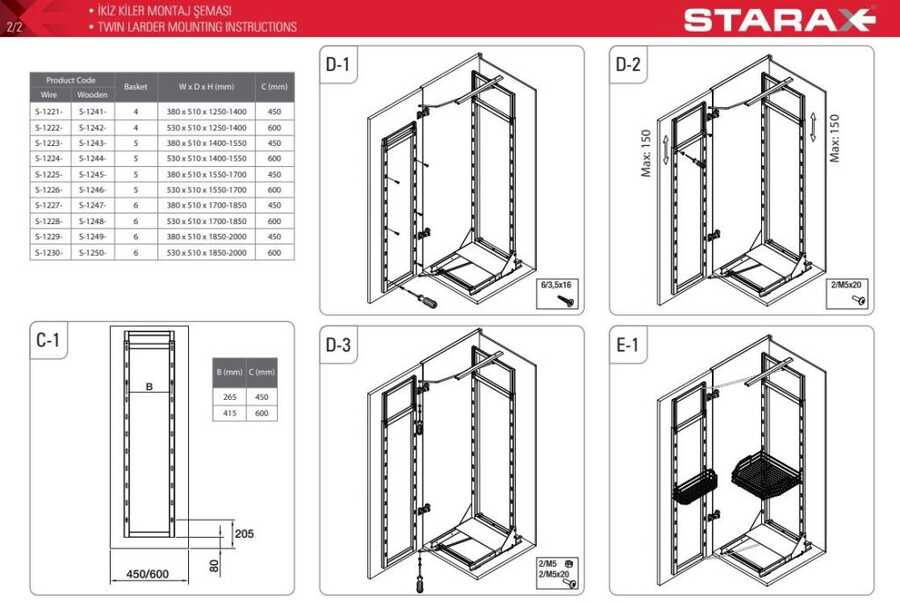 - 450-600 mm modülde sağ ve sol yöne tekli, 900-1200 mm modülde ikili olarak kullanılır.
