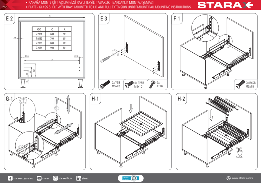 Gelince Haber VerS-2033 Kapağa Monte Çift Açılım Gizli Raylı Tepsili Tabaklık - Bardaklık 80cm