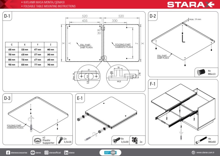 S-2141-W Katlanır Masa Mekanizması 70cm Beyaz