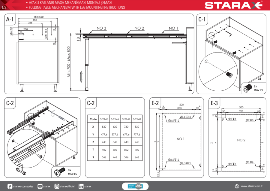 Gelince Haber VerS-2148 Ayaklı Katlanır Masa Mekanizması 90cm Antrasit