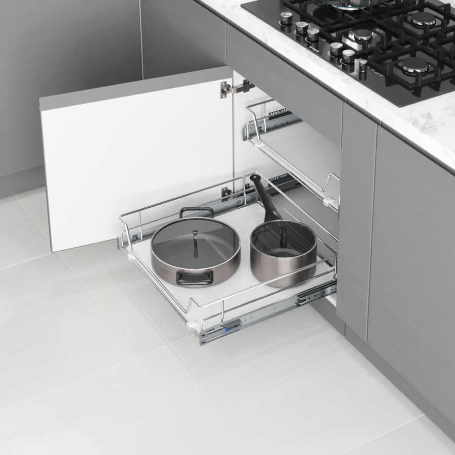 • Yavaş ve sessiz kapanma sağlayan Soft Closing teleskopik bilyeli ray kullanılmıştır.