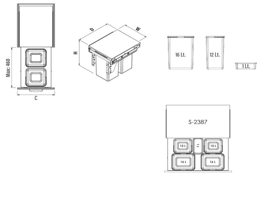 Gelince Haber VerS-2387-A Kapağa Monte Çöp Kovası 80 cm Antrasit