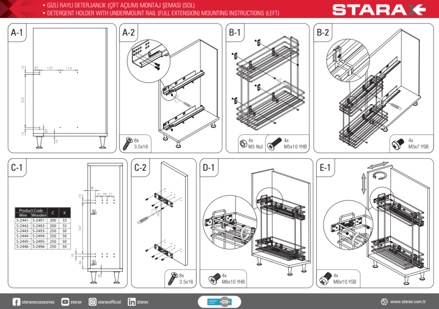Gelince Haber VerS-2445-A Tandem Gizli Raylı (Çift Açılım) Deterjanlık 16/22cm Sol Antrasit