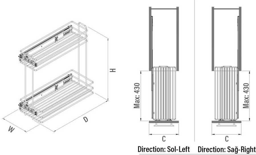 • Yavaş ve sessiz kapanma sağlayan Soft Closing teleskopik ray kullanılmıştır.