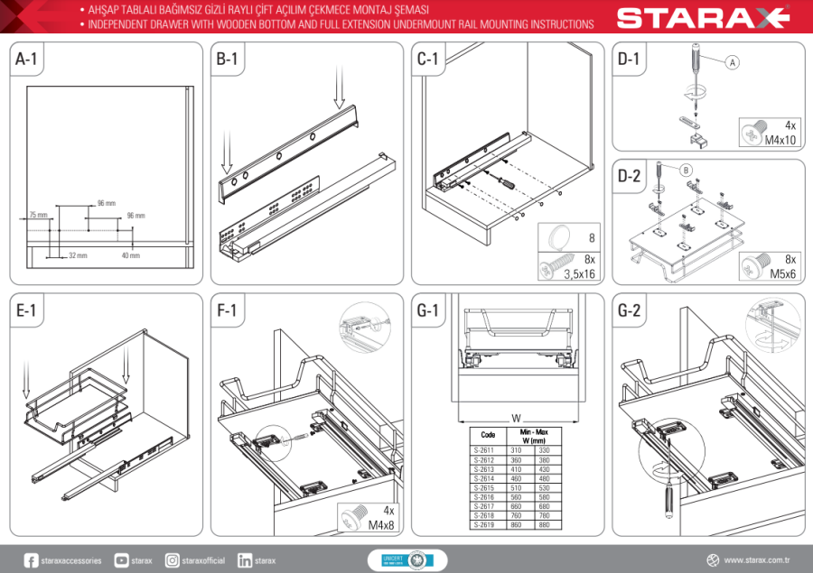 Gelince Haber VerS-2612-A Ahşap Tablalı Bağımsız Çift Açılım Gizli Raylı Çekmece