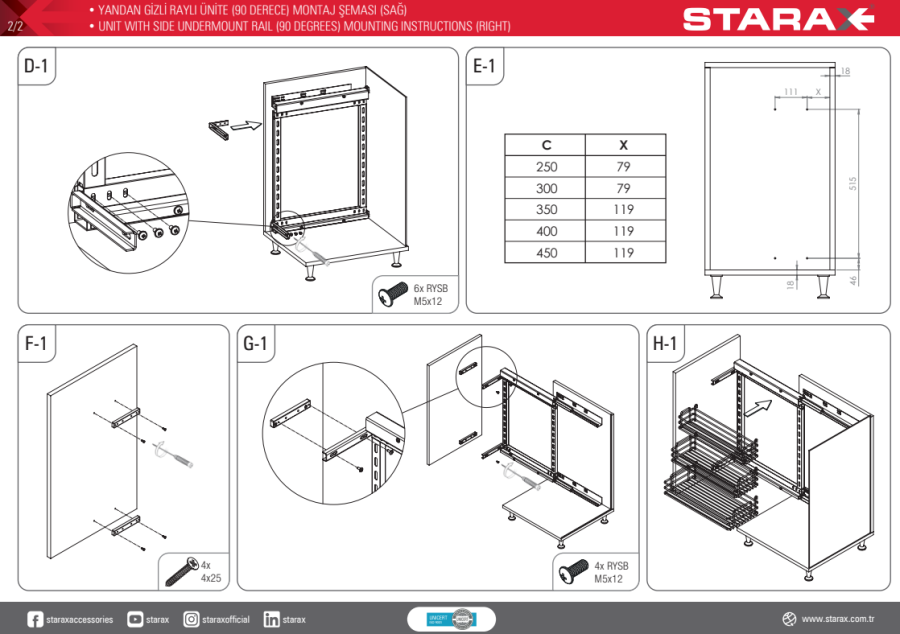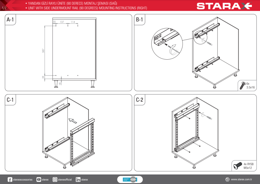 Gelince Haber VerS-2796-A Yandan Gizli Raylı Ünite (90 Derece) ANTRASİT