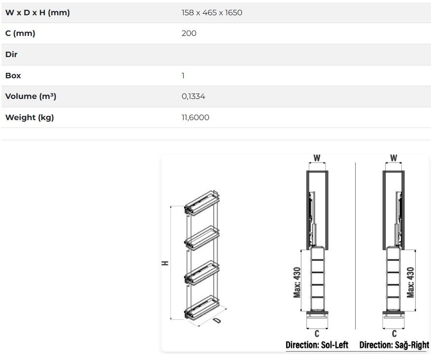 S-2929-A Çift Açılım Gizli Raylı 4 spt. Şişelik 20 cm Sol Antrasit