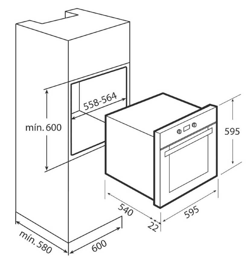 Gömülebilir kontrol düğmeleriCrystal clean kaplı iç yüzey6 pişirme programı65 litre kapasiteİki camlı çıkarılabilir kapak1 derin, 1 sığ tepsi, 1 ızgaraStandart aydınlatmaSoğutma fanıA enerji sınıfı